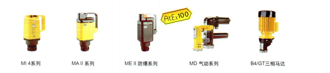 馬達:MI4系列、MA II系列電動馬達、ME II系列電動防爆馬達、MD系列氣動馬達